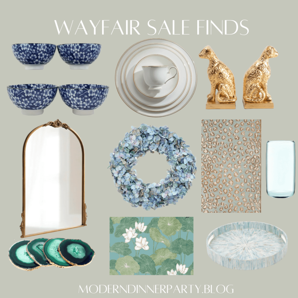 OK, I definitely found the prettiest things on Wayfair. Obsessed with the leopard book ends. The hydrangea wreath will look perfect on the doors to my dining room. The lilypad wallpaper is to die for, and the agate coasters–what a pretty gift for your kid’s teacher or really anyone. Better stock up while the Labor Day Weekend Sale is on!