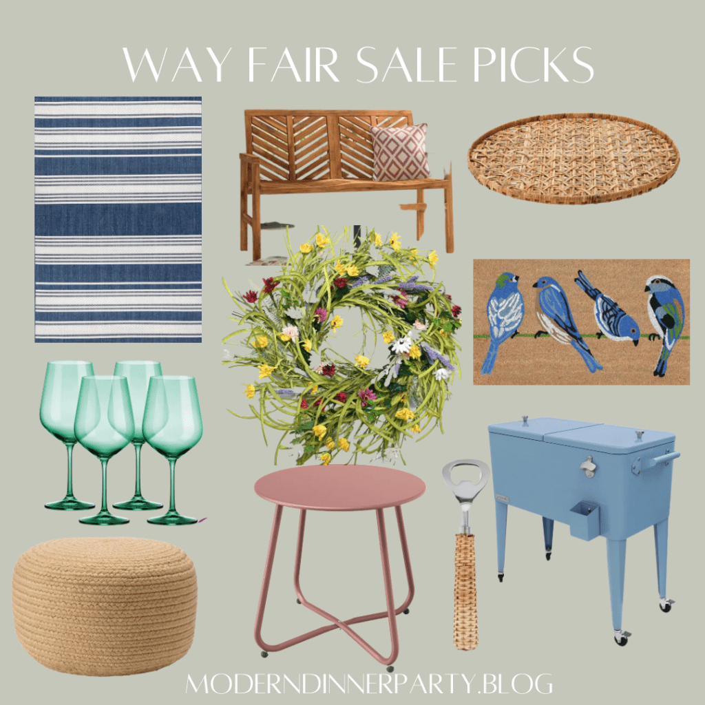 The Wayfair sale has especially great deals on outdoor furniture and decor. I’ve been eyeballing this cooler for a while and it’s in my cart, finally. Will be perfect for entertaining and I love the color. This wreath is also really pretty, and the bottle opener would make a great gift attached to a six pack of beer!