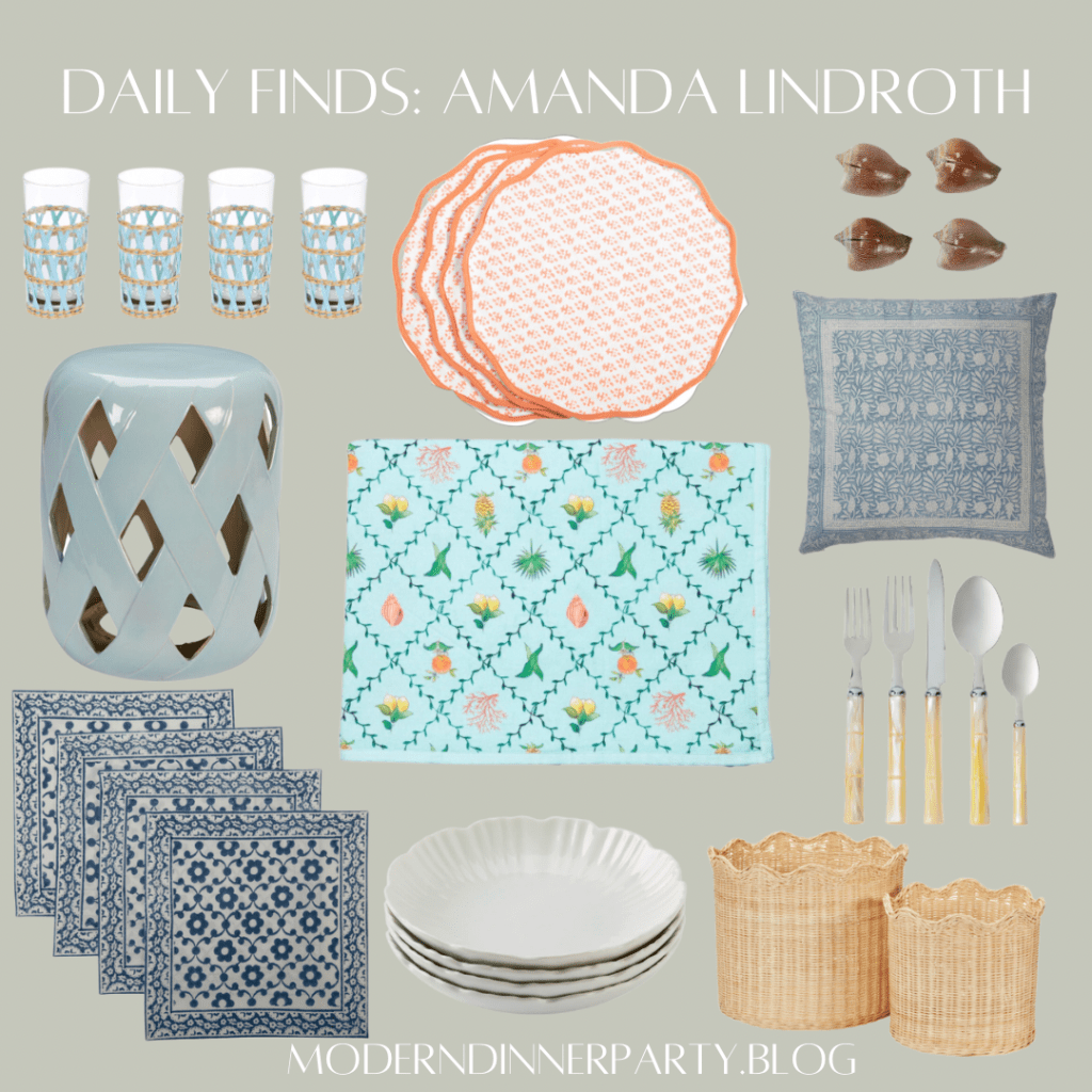More Amanda Lindroth finds for your dinner party table today–deeply discounted, which is really incredible. The baskets are just beautiful and the navy block print placemats are maybe my favorite. Love this coastal chic casual look!