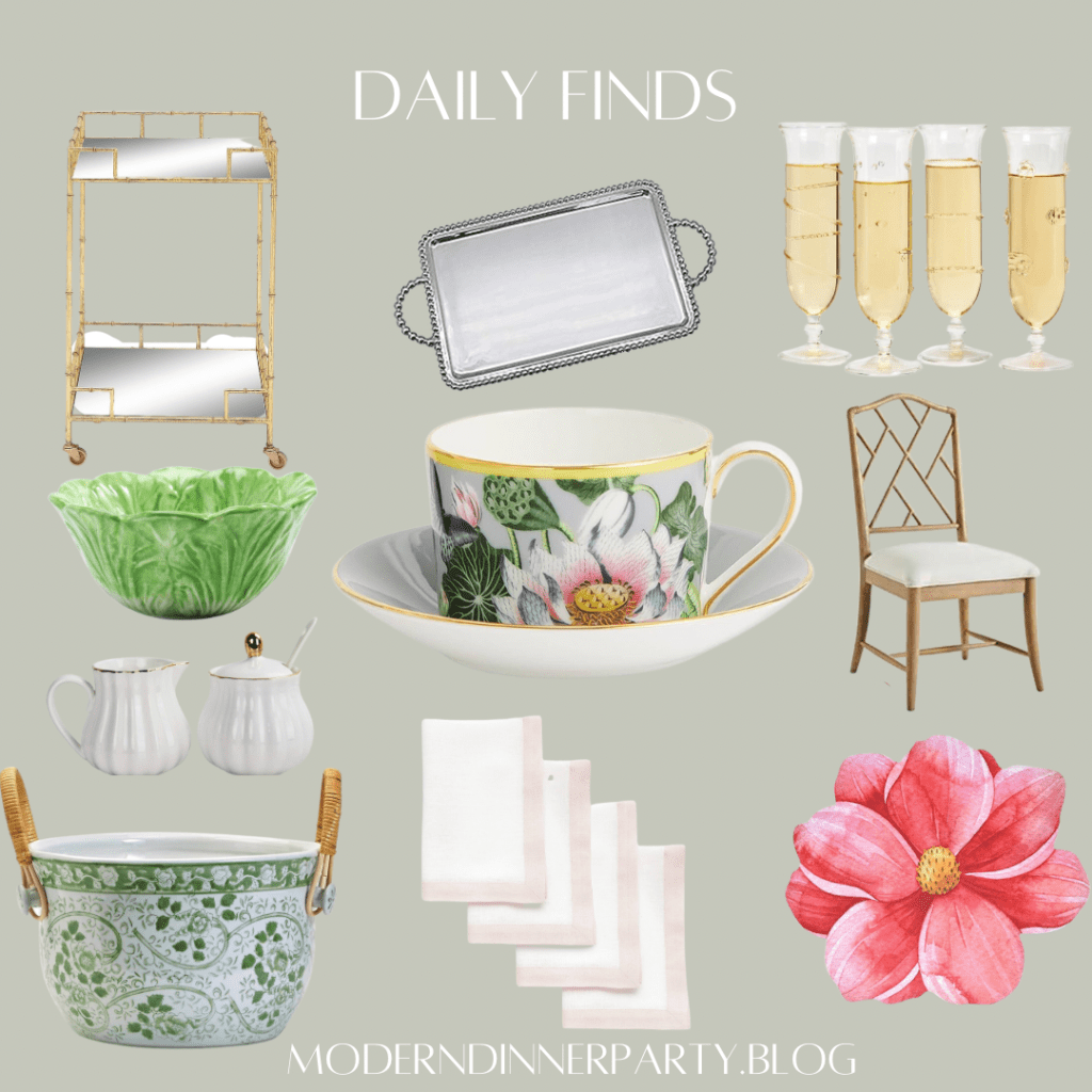 They say the formal dining room is making a come back, and I’m here for it. Sharing a few finds I’d love to have for my own dining room for those fancy occasions. How beautiful is this drink tub? And the champagne flutes are such a fun twist—would also make a great gift. The pink floral placemats are paper! You can use them for a tea party or brunch as an inexpensive pop of color.
