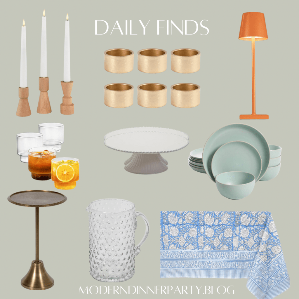 What are you shopping for this weekend? Here are some cute things I came across on Amazon. These candlesticks are great for everyday; same with the blue tablecloth. I love a little drink stand and the color of the cordless lamps, too.