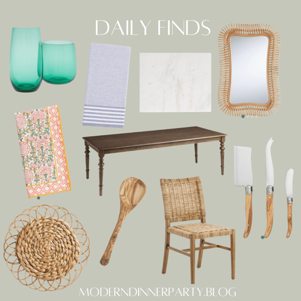 While the World Market sale is going on, I pulled together this eclectic dining room design. The classic table in dark wood tones is so versatile to mix and match with more modern pieces. The block print napkins are a great price and cute colorful addition to your dinner party tablescape!