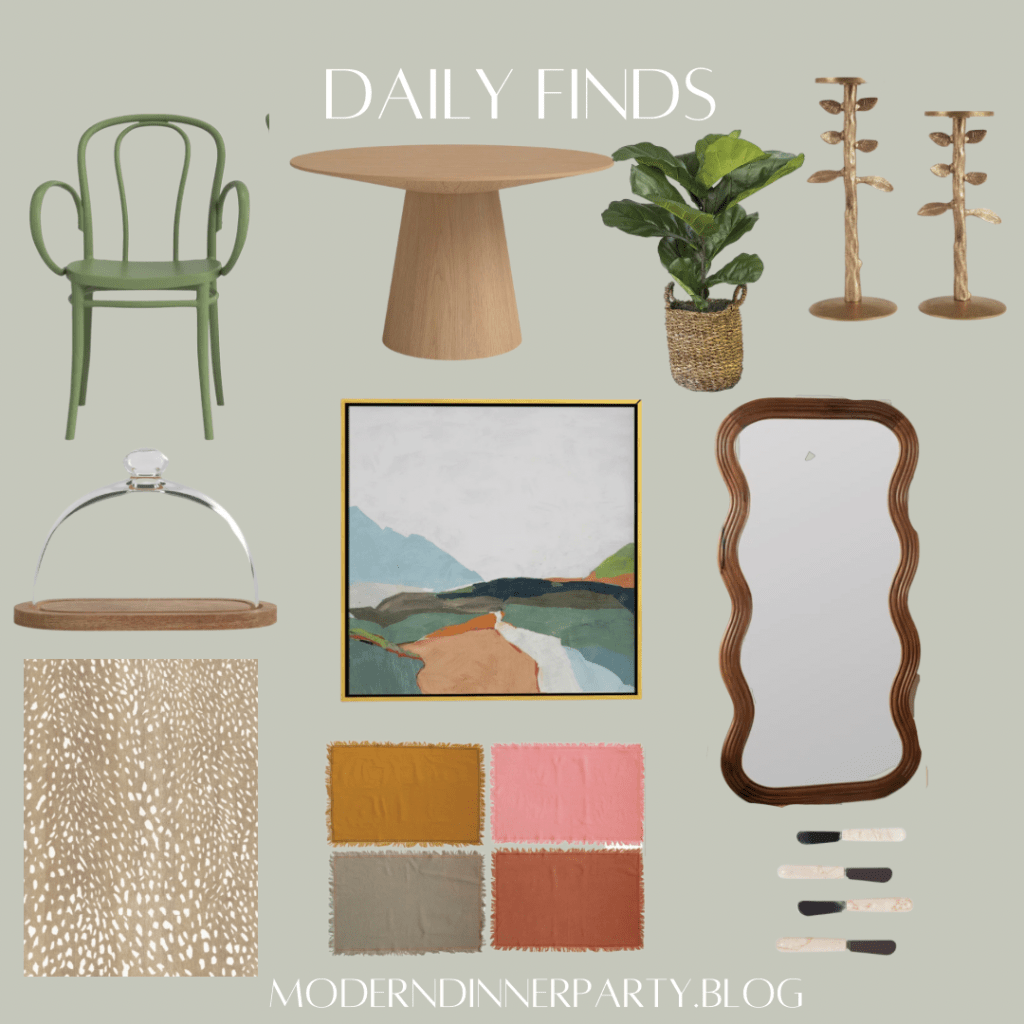 Do you ever get the itch to totally redecorate? I’m obsessed with this rug, enough to design this dining room around it and maybe buy it for myself, too. The mirror is pretty spectacular, too. Think of all the meals you’d share in this fun room!