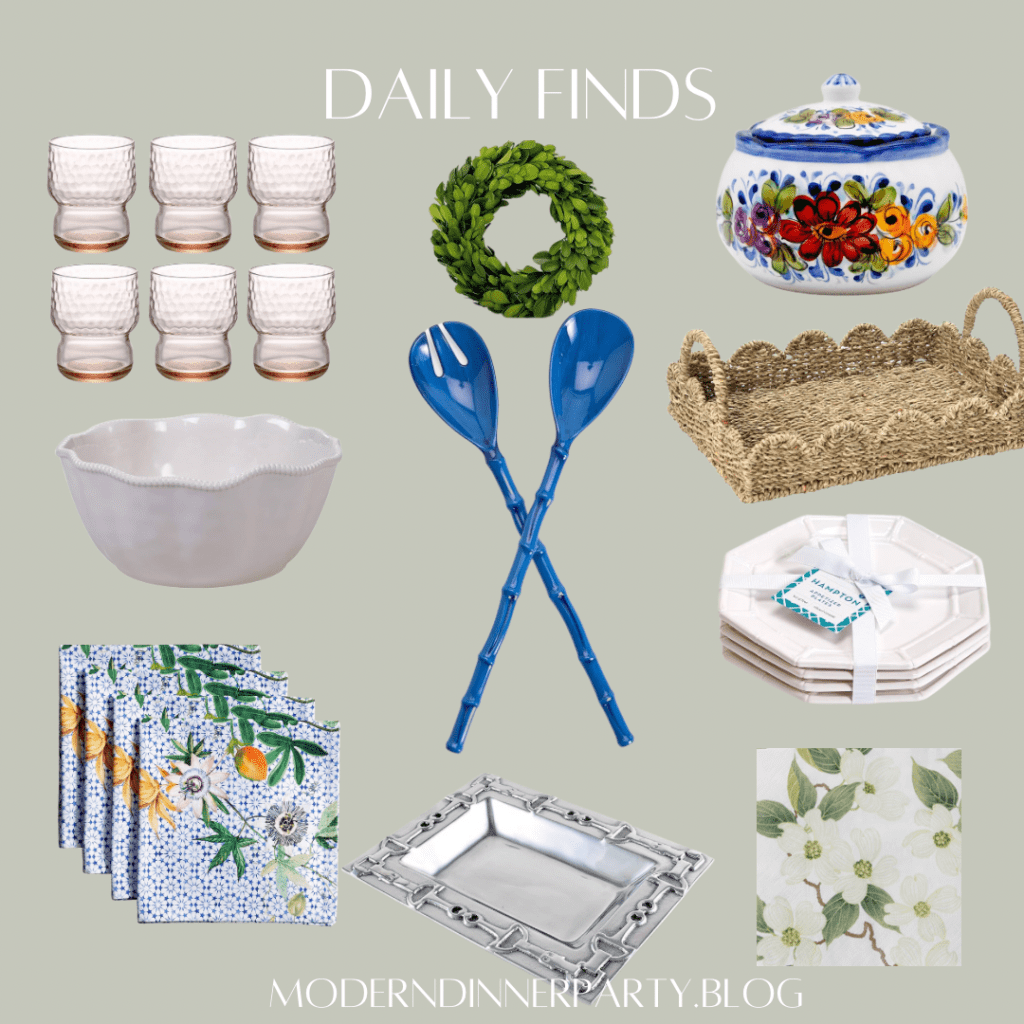 Who loves pops of blue on their dinner party table? Count me in! Here’s a sweet scene for setting a table any time, all ready for your Amazon cart. I love the candlestick wreaths as tiny hoops of greenery to make your table fresh and formal-ish. These cloth napkins are also great for pops of color.