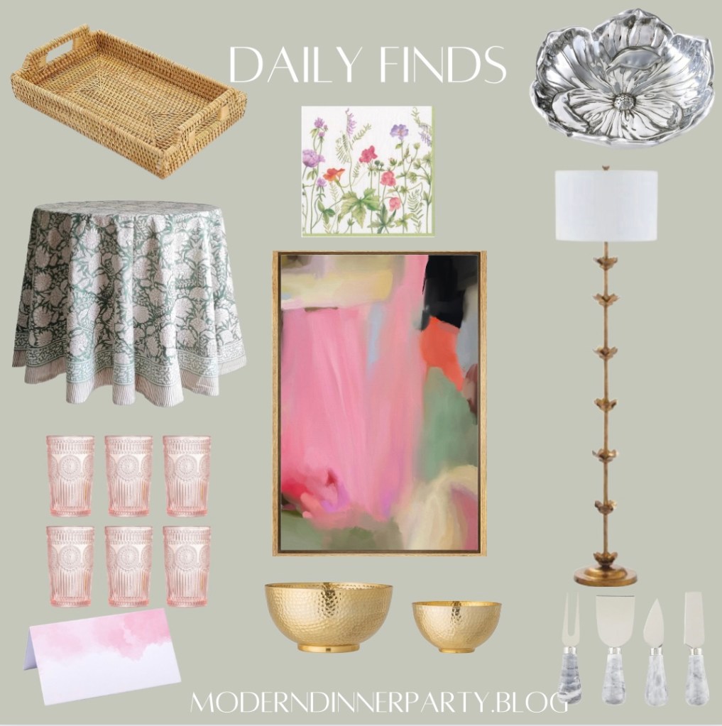 Today’s Daily Finds are a little eclectic, moody and colorful, together creating a cool vibe for your dinner party. The gold bowl set is a steal at $33, and I love the pink cups for so many occasions.