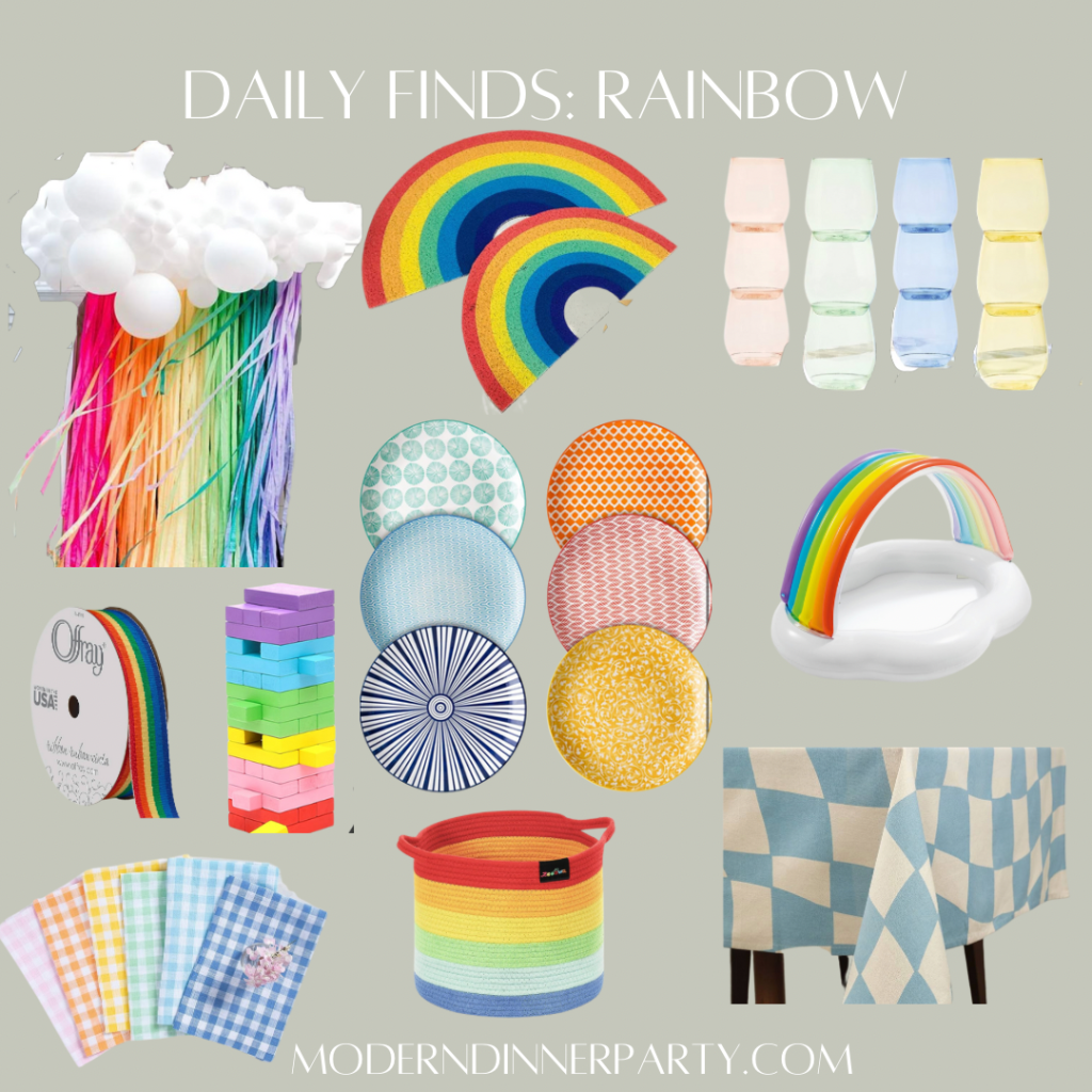 We love a good rainbow party theme, so have gathered some reusable items for your next soirée, celebration, Pride month, kid party and more. I’d use this baby pool as a cooler for drinks! Enjoy!