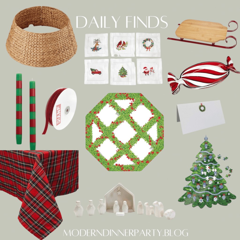 Not to get too far ahead of ourselves, because we love Thanksgiving around here, but we have to share some Christmas and winter essentials now so you don’t miss out on your chance to stock up! I love the look of a tree collar (my tree skirt is always wrinkly even when ironed) and a favorite present wrapping hack is to use this velvet ribbon to escalate the package. I keep a roll of this on hand at all times! Useful for hanging ornaments, too. Stock up now on a few holiday hostess gifts like this cute sleigh cheeseboard.