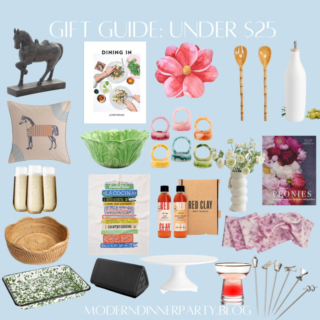 Have you started your holiday shopping? Let this gift guide help you kick things off! I’ve gathered some finds from this year, all $25 or less, that would make great gifts! Whether you need a gift for the host, babysitter, niece or a quick idea, I’ve got you covered without breaking the bank. A nice coffee table book (I have this one and it’s so pretty), a good item like this delicious honey, or the adorable napkin ring set—you can’t go wrong. These are all items anyone would enjoy!