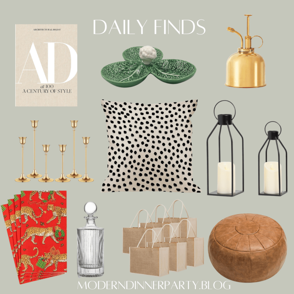 Whew. With the big sale days behind us, I feel a little more focused in terms of what I need to do for the holidays. Sometimes that includes pulling together rooms of my home with neural pieces like these great lanterns, leopard pillow or decanter. Toss on a bow, add some greenery, use festive napkins and you’re ready to roll.