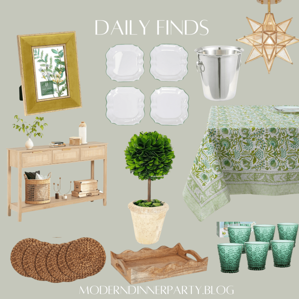 I love combining shades of green for a festive spring table. Just bought this exact tablecloth and green cups for my Easter table, nice quality and so cute together. The chargers are neutral, I’d use any white plate you already own. Add some greenery or white blooms to tie it all together.