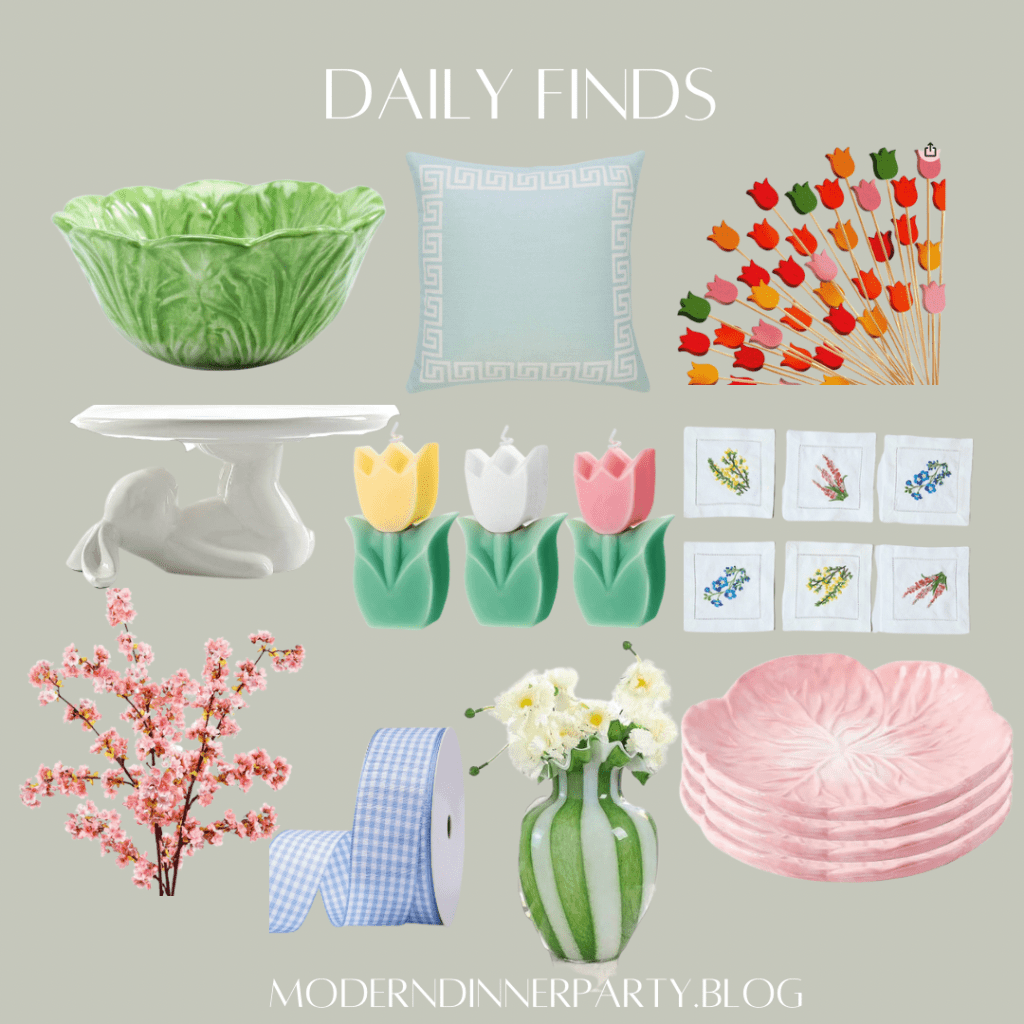 We are still mid-bloom where I live, so I’m embracing spring decor to add the cheerful vibe a little early. How darling are these tulip candles? And blue gingham ribbon is perfect to have on hand for gifts, wreaths, adding a little something extra.