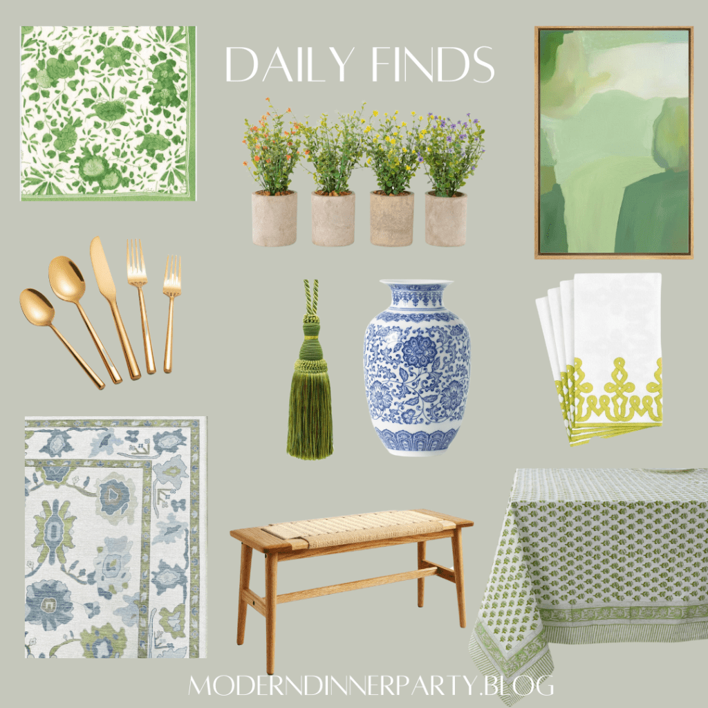 This rug is inexpensive but makes a statement—perfect for a dining room refresh. I love this color scheme, with classic and modern pieces.