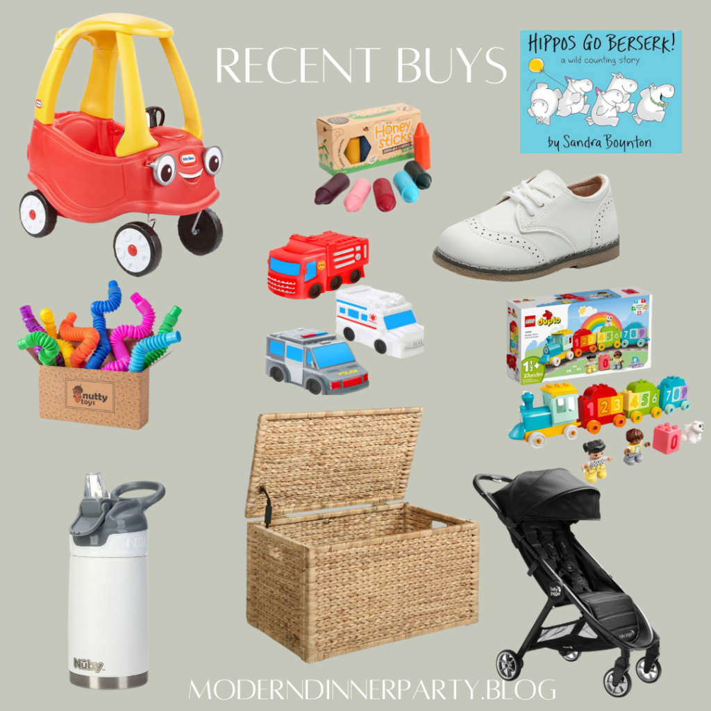 My little guy is on the go! Wanted to share a few recent buys that we are loving at the 16 month age range. We just bought a second version of this toy chest for our basement. We have a few of these water bottles, not too expensive and work quite well. The Duplo set has become a go to birthday gift for our friends turning 2. A favorite book, easy white shoes for Easter and more!