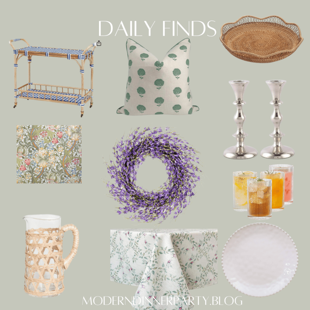 I like to buy a few new pieces at the start of each season to complement what I already own. This year I am loving this cute basic melamine tray, lavender wreath for my porch, classic silver candlesticks and these fun pillowcases!