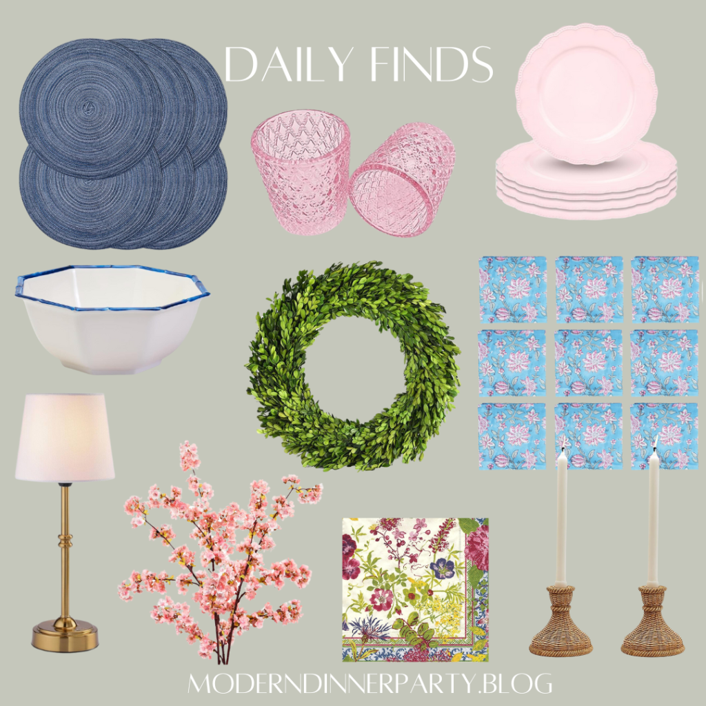 Enjoy this spring tablescape design! Pop these beautiful Caspari cocktail napkins in your cart to dress up a casual gathering. I adore these candlestick holders, too!