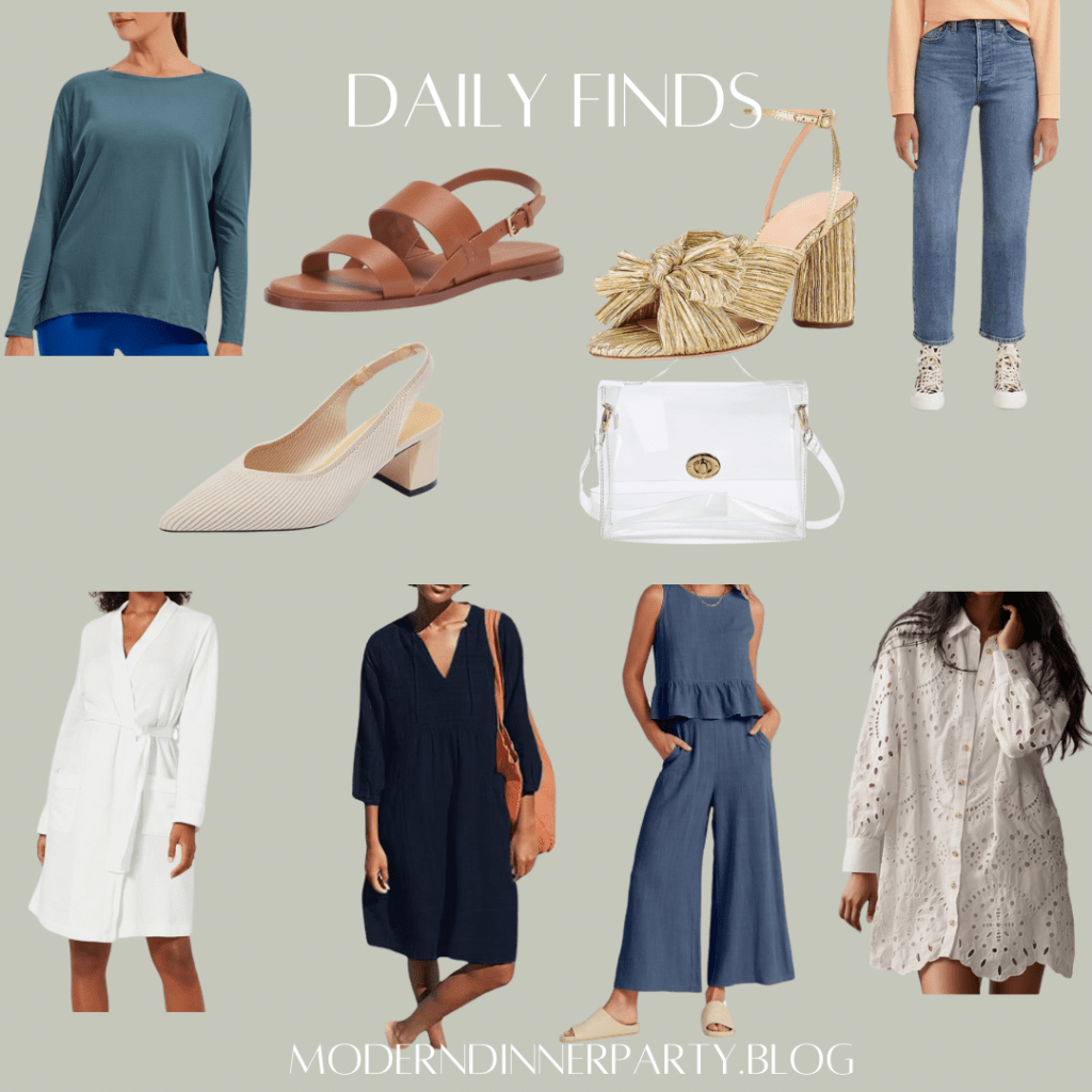 Amazon clothing round up! I own every piece listed here and love. The tee is a staple known for leisure in 3 colors. The waffle robe is inexpensive and was perfect last summer for wrapping up after an outdoor shower at the beach. This linen set is amazing and comfy, but size up. The Cole Haan sandals were perfect for a week in Paris—so comfy, no blisters!