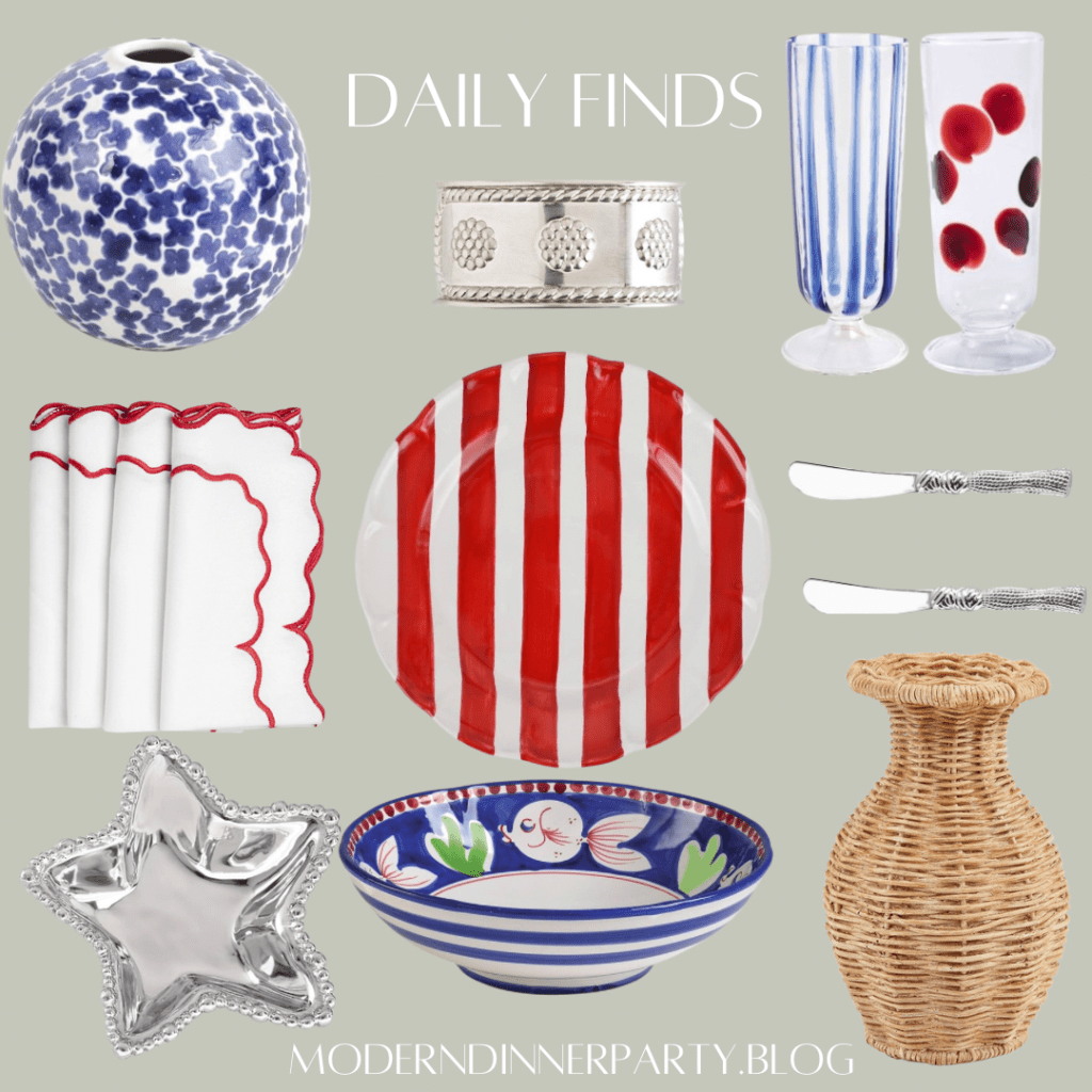 Can’t get enough red, white and blue in the summer! Today’s round up is a perfect lake or beach tablescape for July 4 weekend, or really any time!
