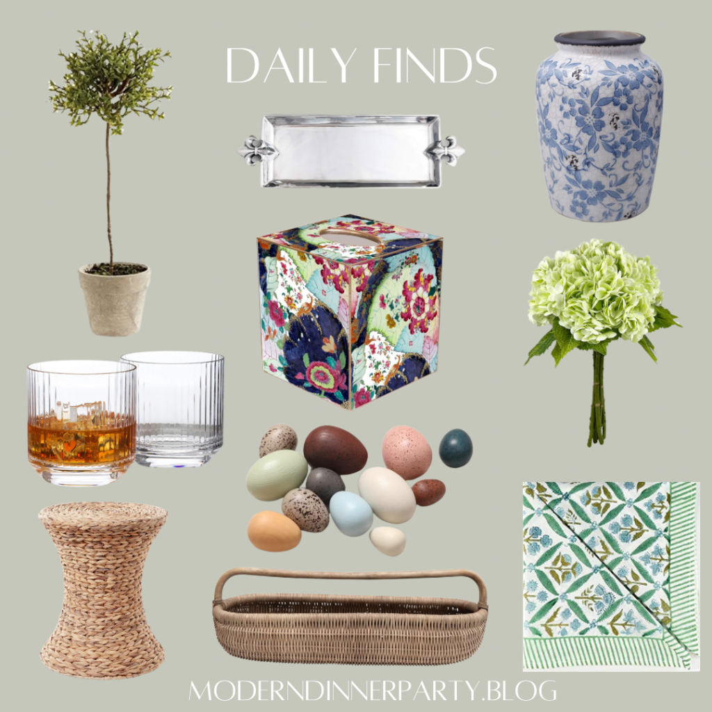 Today’s tablescape draws influence from nature. The neutral eggs, long basket and other natural fibers. Bright greens in the napkins and hydrageas and more.