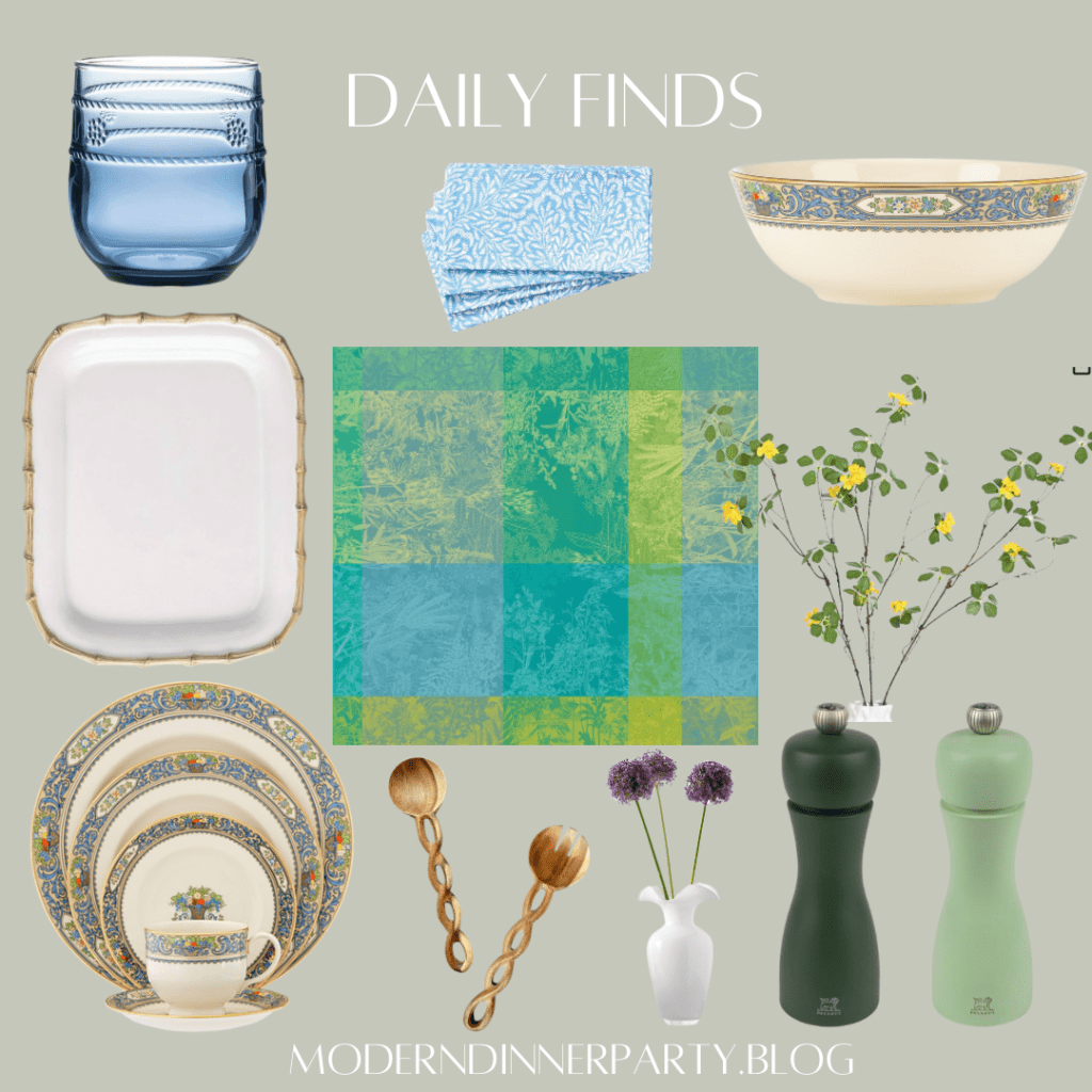 Mixing similar shades of the same color family is such a chic look! Here’s some blue and green inspo, and how to mix in a beautiful, complex china pattern into your tablescape.