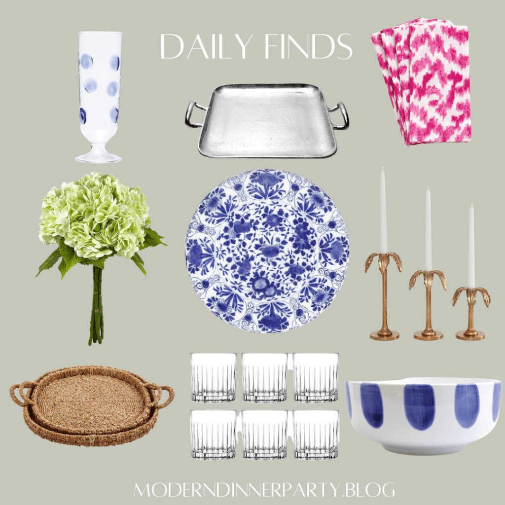 Today’s round up is full of some of my very favorite pieces and looks a lot like my everyday table. Italian ceramics, blue and white, pops of pink and hydrangea—what’s not to love?