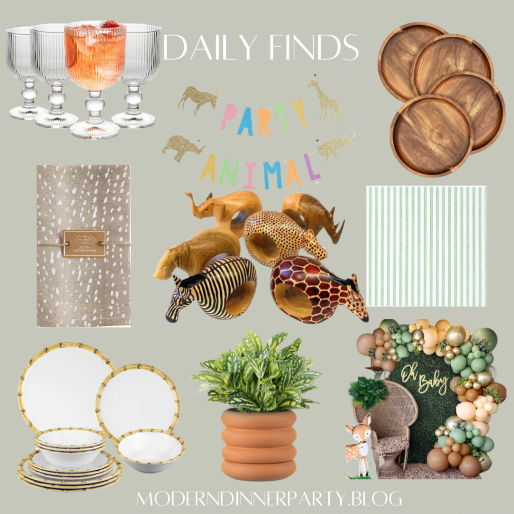 Plan a safari party for your favorite animal lover, zoo visitor or mother to be! I’d keep this theme neutral with subtle animal prints, greenery and how about these adorable animal napkin rings!