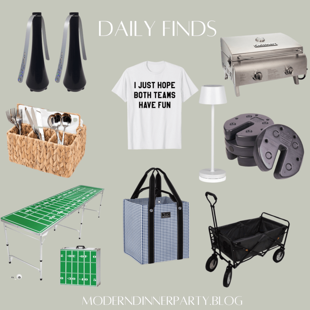 Tailgate season is almost here! Add your team’s favorite colors and these fun finds will help update your set up. Perfect for football, polo, basketball, even concert season. Fly fans are a must when food is sitting out, and these tent weights are the best. For the apathetic attendees, this tee will do the trick!