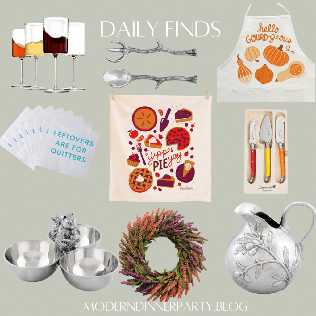 Why not start your Thanksgiving prep now by getting your table and serving pieces all squared away? Sharing some beautiful and quirky finds—all also make great hostess gifts or fall decor! I’m especially partial to the pie tea towel and the squirrel candy dish.