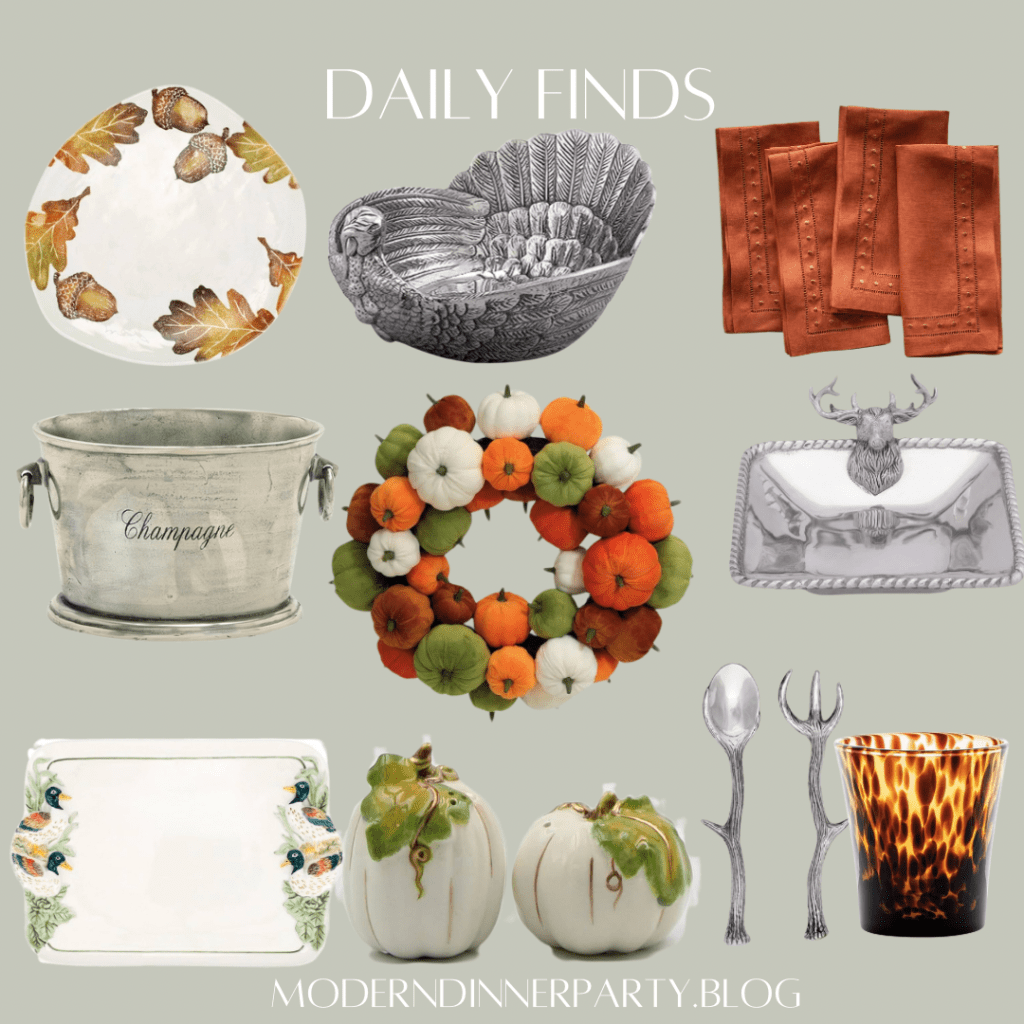 Found some beautiful pieces for your Thanksgiving table! Absolutely love these tortoise shell glasses (perfect for any time of year, but a great modern twist for the holiday). And this little turkey snack bowl—what a cute hostess gift idea!