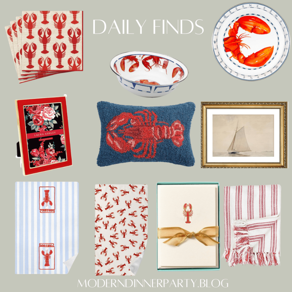 Lobstah dinner, what a tradition! Pick up a few of these cute lobster themed items to jazz up this year’s fun. Love the tea towels, notecards and pillow, too!
