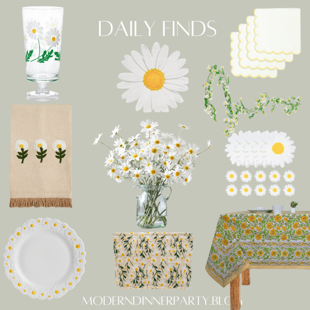 If you’re crazy for daisies, this is the post for you! Set a pretty daisy-themed table with these picks from Amazon. I especially love the block print tablecloth—so cheerful!