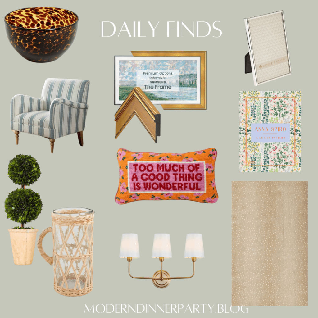 I have most of these pretty things in my living room, all centered around this beautiful antelope print rug. I get so many compliments on these topiaries, which are very well priced and a great dupe.