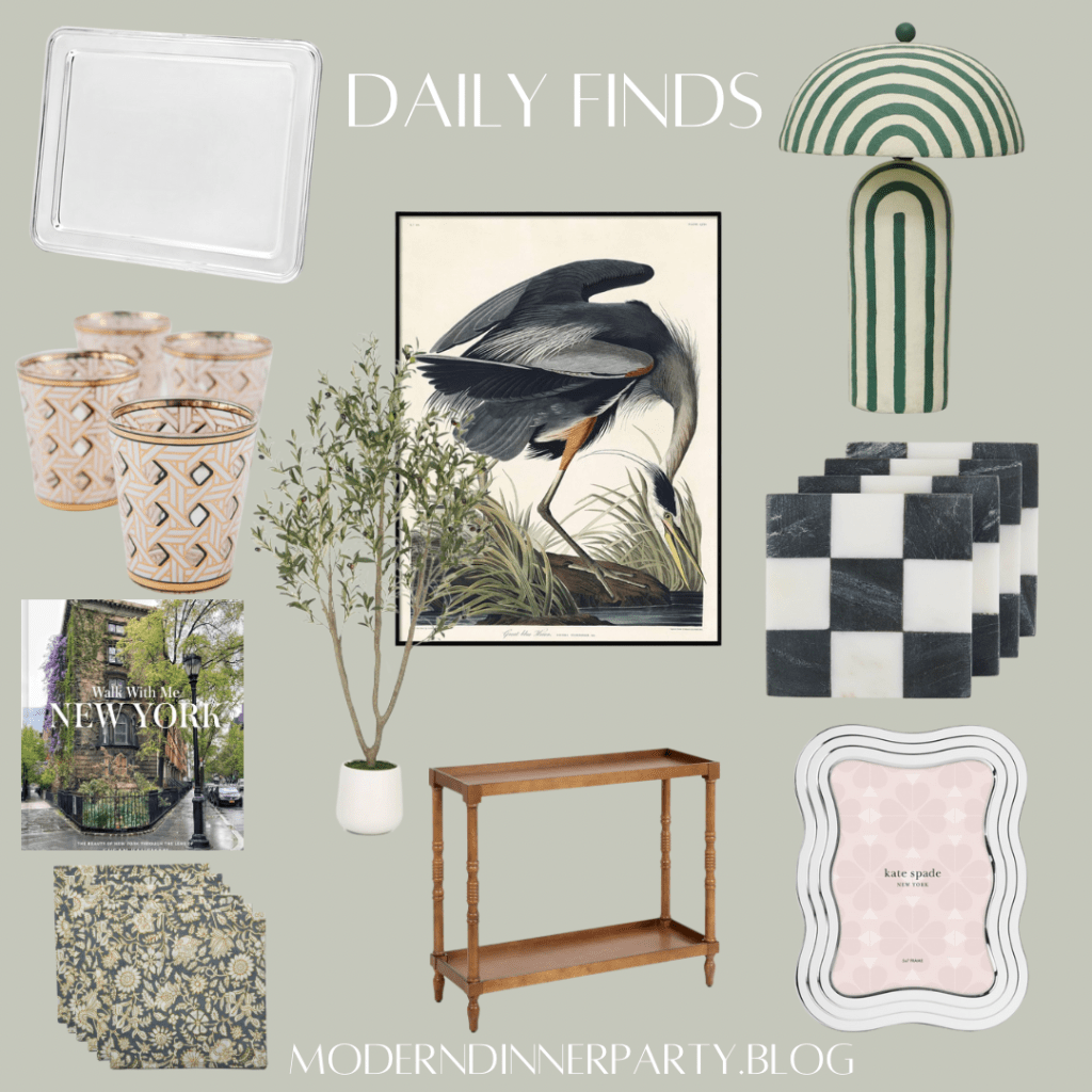 This neutral, black and white decor scheme is so chic! Toss in a super cool and funky lamp, a classic piece like this side table and a pretty tray and you’ll have a sophisticated and collected look!