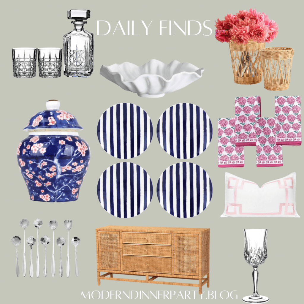 Im obsessed with this rattan sideboard and wish the sizing was right for my dining room—hope it works for you! The rest of today’s finds are just so cute, you really can’t go wrong with pink and blue!